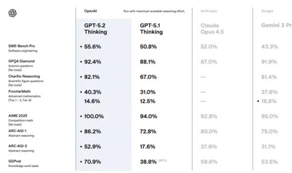 8.OpenAI稳重发布GPT-5.2!更实用:作念表格、写PPT、敲代码等坐褥力大增